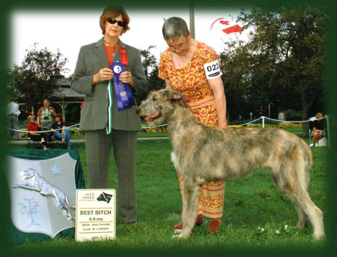 1st 6 to 9 month bitches IWCC National 2005 - breeder/judge Gretchen Bernardi, USA (pictured above)