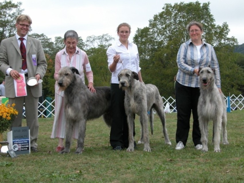 Best Stud Dog IWADV Specialty October 9 & 10 2005 with son Doc, Can.Ch. Aotearoa Emrys Meriadoc and daughter Can.Ch. Aotearoa Kui's Kotiro. Judge Per Lundstrom, "Greirish" Sweden