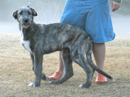 At her very first show at just 6 months of age Pokere quickly proved she was a natural "show girl". At an all breed Sanction Match in Hudson Quebecon the 31 January 2010 she got off to a flying start with 2nd in the Bitches division of an all breeds combined Puppy Sweepstakes, then on the Winners Bitch over adults in the Regular IW classes, and Best Puppy in Breed and Group. She quickly finished her Championship from the puppy classes with 2 adult Group placements and 4 Best Puppy in Group wins in 2010. Also some nice Specialty class wins at IWANE in Warwick RI, USA, and at the IWCC National. She also won the 14th Best Head Class for the Aotearoa Irish Wolfhounds at IWANE in July 2010 under Irish breeder Judge Anthony Killykeen Doyle, a win to be cherished as he passed away not long after this show.