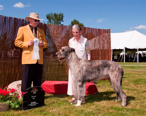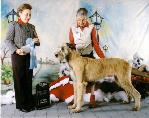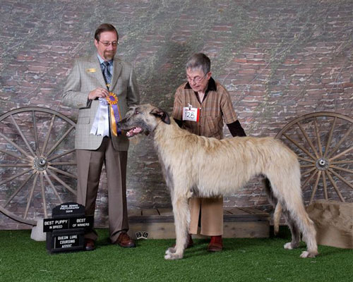 I have great news! My " blond beauty" Sophie's first litter is due 18 January 2012. Moa is the sire, and this will be his 5th litter. Sophie's and Moa's pages are on my website in The Girls and The Boys sections respectively. What makes this litter particularly exciting is that BOTH Sophie and Moa are Best Head Class winners at Irish Wolfhound Specialties in Canada and the USA, so beautiful, typical, heads, so important as a distinguishing feature of the breed, can be excpected along with all the other fine qualites of these two beautiful hounds and their ancestors.