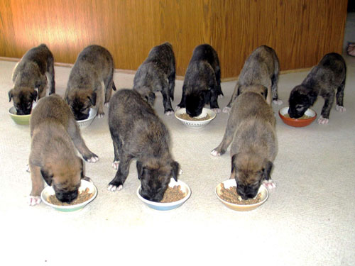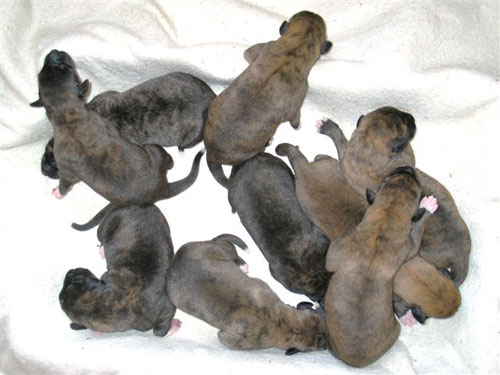 Mango and her pups, a fine litter of 9, 3 boys and 6 girls sired by Moa, born 26 July 2009