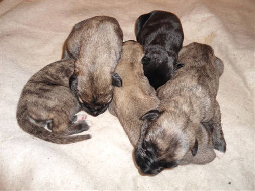 A new litter born 15 November 2012 to Sibyl sired by Salt, 1 boy and 4 girls, all doing well.