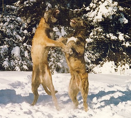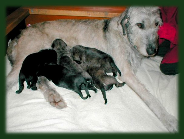 Here is Chelsey, (Can.Ch. Locksley's Wild Chelsey) with all her litter of 5, including Monster girl, and 2 black girls.